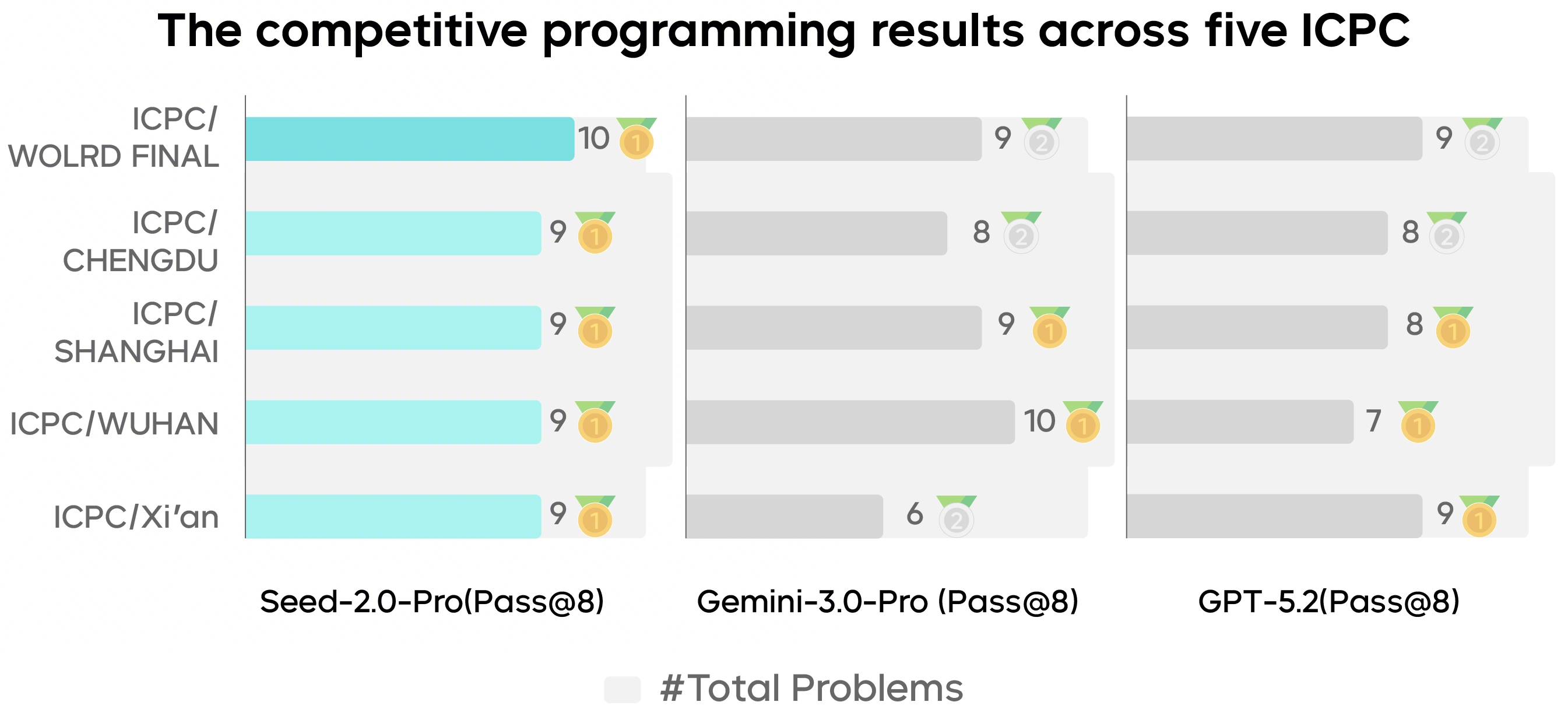 In addition, Seed2.0 Pro has significantly enhanced its capability to apply interdisciplinary knowledge. It delivered exceptional performance in STEM benchmark tests, such as FrontierSci, with scores in some scenarios exceeding GPT-5.2. Meanwhile, Seed2.0 Pro achieved gold medal results in ICPC, IMO, and CMO tests, demonstrating further improvements in the model's mathematical, coding, and reasoning intelligence capabilities.