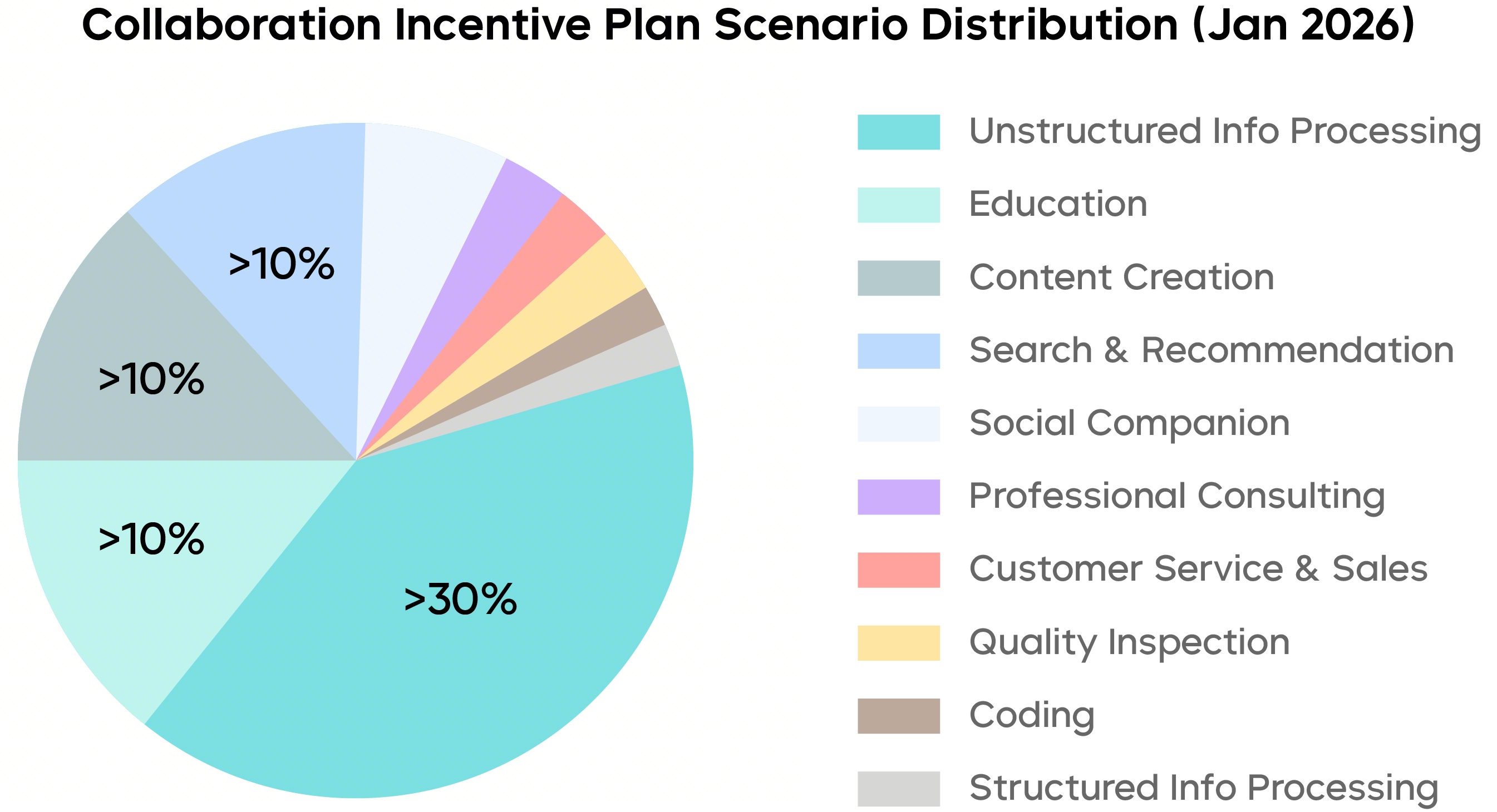 Seed 通用模型 MaaS 服务在中国陆的调用场景分布,数据来自“火山方舟协作奖励计划”,相关用户已签署授权协议
