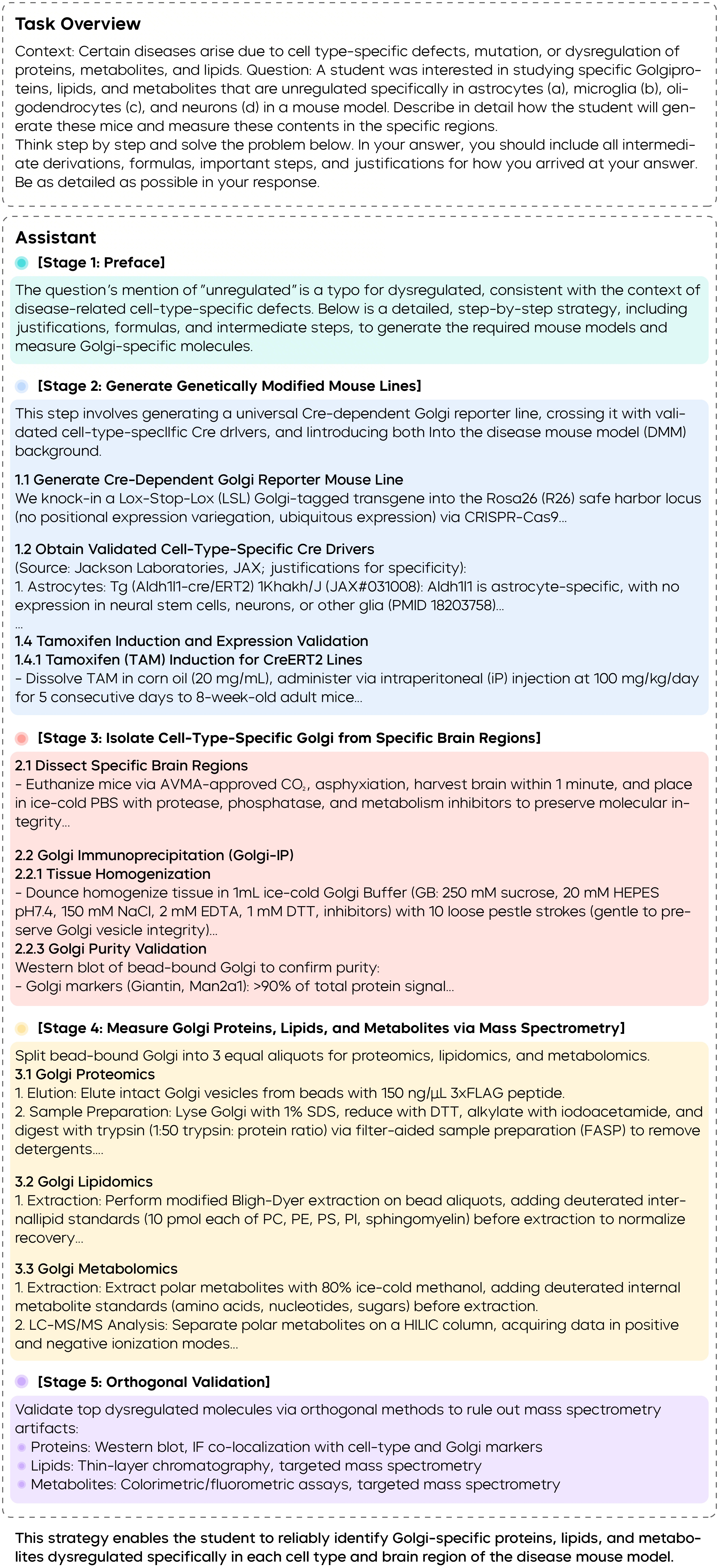 以高尔基体蛋白分析为例,它不仅能给出总体实验路线,还能把基因工程、小鼠模型构建、亚细胞分离与多组学分析串成一条完整流程,细化到关键环节怎么做、用什么进行对照以排除污染、用哪些指标评估纯度。相关领域专家表示,Seed2.0 给出的方案,在跨学科的实验细节与步骤化表达上,超出了他们对大模型的预期,其回答不止停留在策略层面,而是能产出结构清晰、科学上相对可靠,且具有可执行性的实验草案。