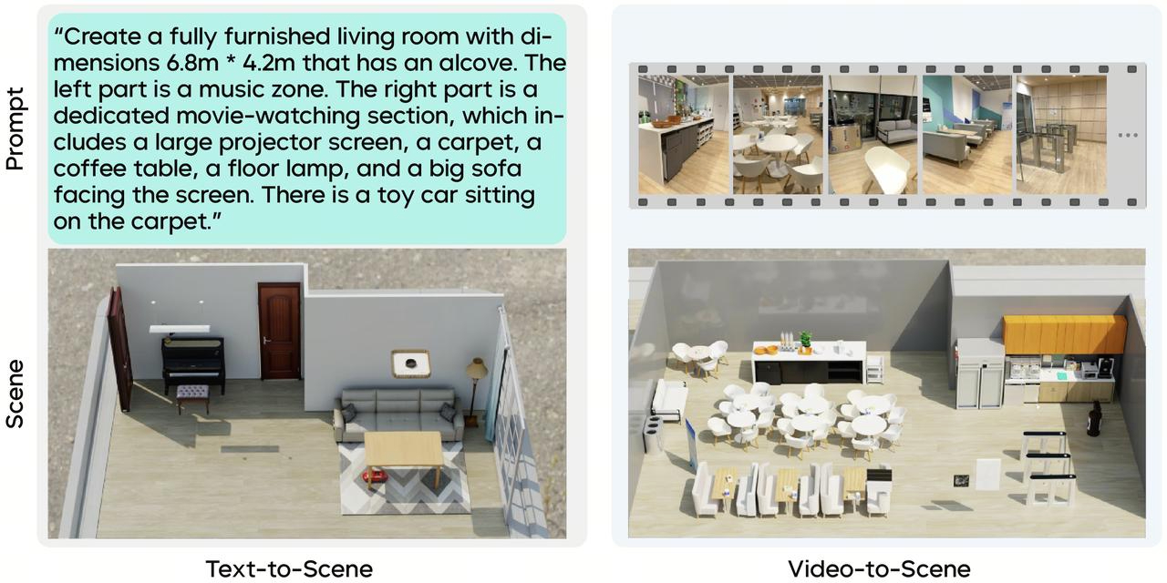 To achieve plausible object arrangements, Seed3D 2.0 intelligently adapts its layout strategy based on different input conditions: for text inputs, it utilizes a fine-tuned LLM for spatial reasoning and layout generation; for multi-view image or video inputs, the model additionally leverages visual signals like depth estimation, along with capabilities such as instance segmentation and occlusion inpainting, to infer the scene's spatial layout. Once the layout is obtained, Seed3D 2.0 can generate 3D content individually and assemble them according to their spatial relationships to construct a rich and complete scene.