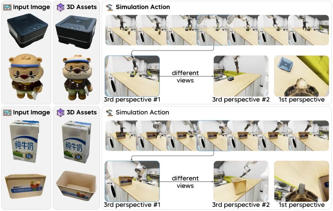如下图所示,输入单张图像,Seed3D 1.0 即可生成能直接集成到 Isaac Sim 中的 3D 模型,用于物理仿真和机器人操作测试。